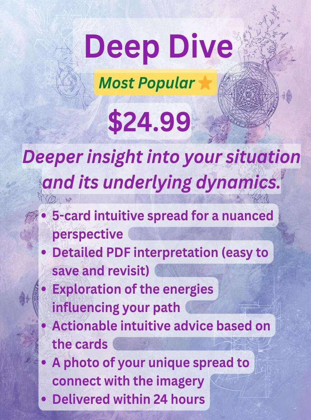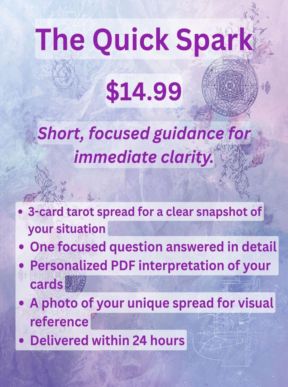 Get your personalized PDF reading along with a photo of your cards delivered to your inbox within 24 hours of submitting your form.